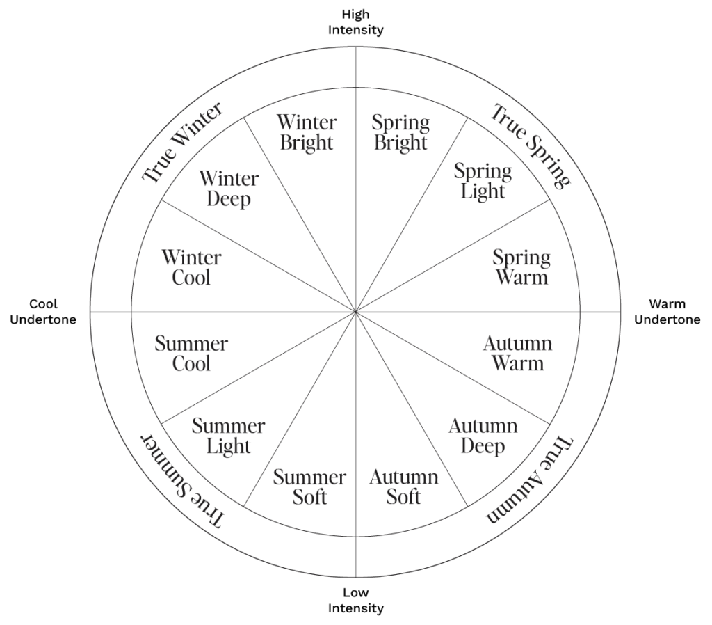 Our process is based around in-person and digital draping, where we compare a series of carefully selected colors and observe how your complexion reacts. Using our expertly trained eye to eliminate the colors that drain color from you and keeping those that brighten you up, we are able to identify your undertone (warm or cool), intensity (bright or soft) and value (light or deep) to assign you one of our 16 seasonal profiles.